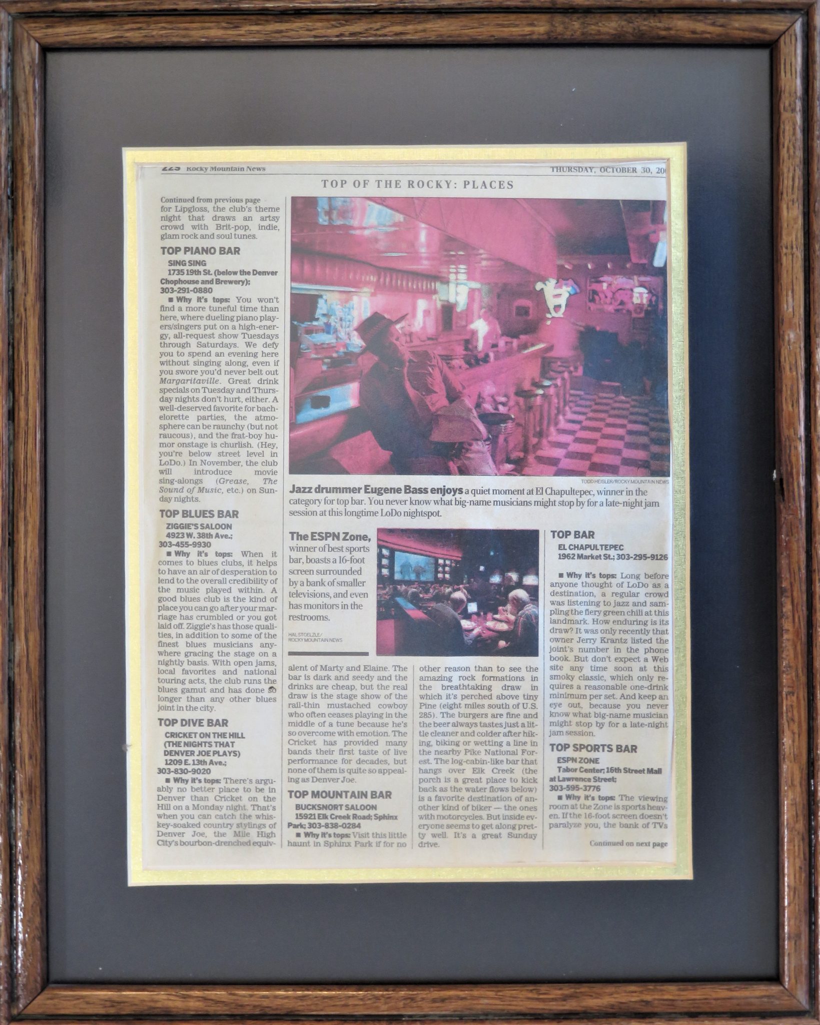 Colorado Music Hall of Fame is grateful to have had several artifacts and newspaper clippings donated to our archives from El Chapultepec. The Hall of Fame will ensure its history is not forgotten.